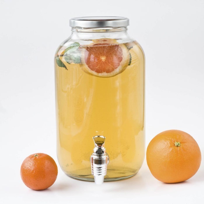 Диспенсер для лимонада 4,25л изготовлен из стекла, кран прочный из качественного пластика (мы используем данные краны от проверенного поставщика с 2017 года), крышка алюминиевая на закрутке.