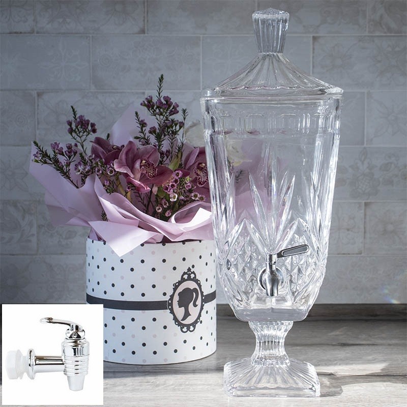 Лимонадница изготовлена из массивного стекла, кран из нержавеющей стали, крышка стеклянная.